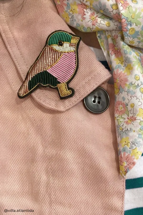 Bijou brodéOiseau vert & rose