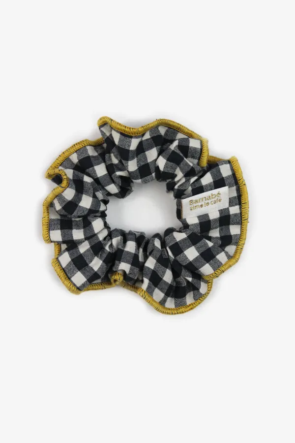 Chouchou en tissu vichy bordé d'un surjet contrastant. On adore !