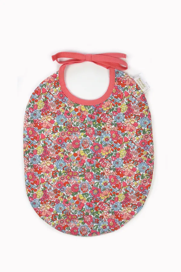 Un coté en éponge pour éviter toutes les catastrophes et un coté en si joli tissu Liberty pour faire des sourires chez Bonne Maman ... Des couleurs gourmandes et des motifs délicats ... Ce grand bavoir fera un très joli cadeau de naissance !