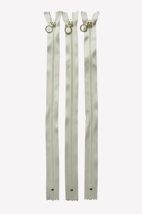 Lot de 3 fermetures éclairs nylon35 cm - crème